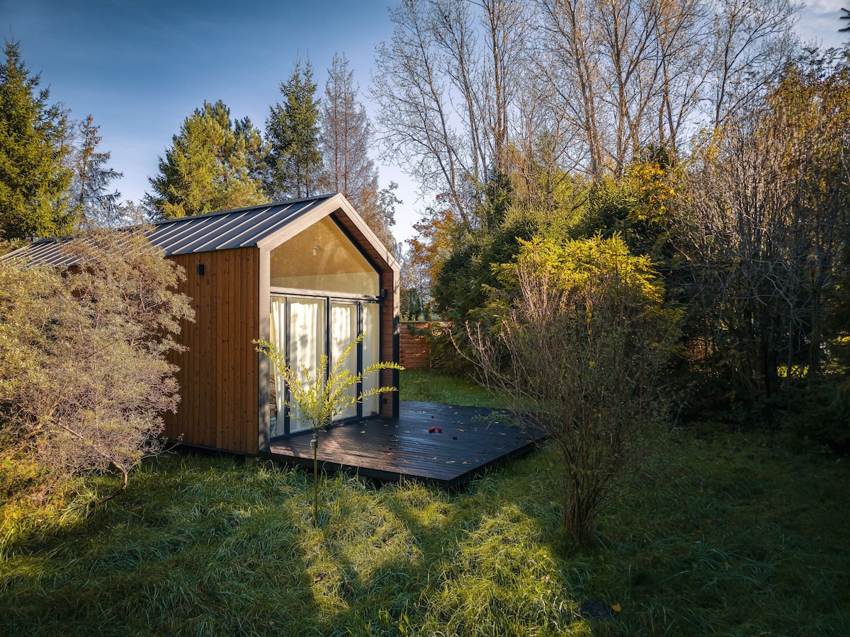 Construido en madera, ofrece un acogedor interior con una cama tamaño king, luz cálida y ventanas panorámicas para ver las puestas de sol. En la gran terraza hay un lugar para relajarse, perfecto para cenas a la luz de las velas bajo las estrellas y un rincón de spa: una bañera de hidromasaje de la famosa compañía Sundance Spas. Es un oasis de paz y tranquilidad, perfecto para una escapada romántica, donde podrás celebrar la proximidad y la naturaleza lejos del bullicio de la ciudad.