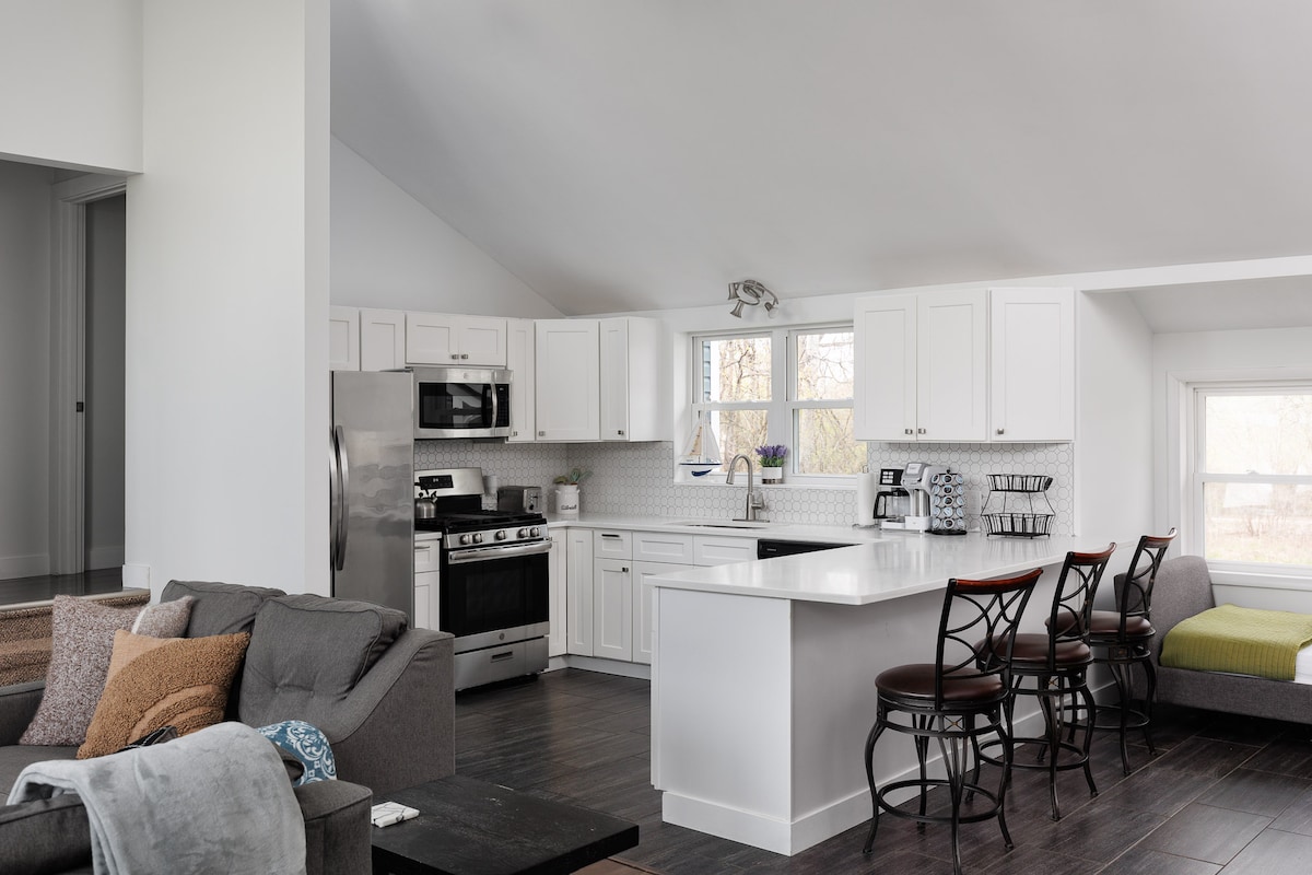 Casa de nueva construcción diseñada específicamente pensando en los huéspedes con vistas al río Saint Lawrence. Disfruta de una escapada inolvidable en otoño o en Navidad en este oasis frente al mar. Lo más destacado de esta casa es un gran dormitorio principal con vistas a numerosas islas salpicadas a lo largo de la amplia vista al agua. Se instalará una zona exterior para hacer fogatas y parrillas para la temporada de otoño. Camina por nuestro sendero hasta tu propia orilla privada. Un lugar ideal para parejas, familias pequeñas o amigos que se reúnen