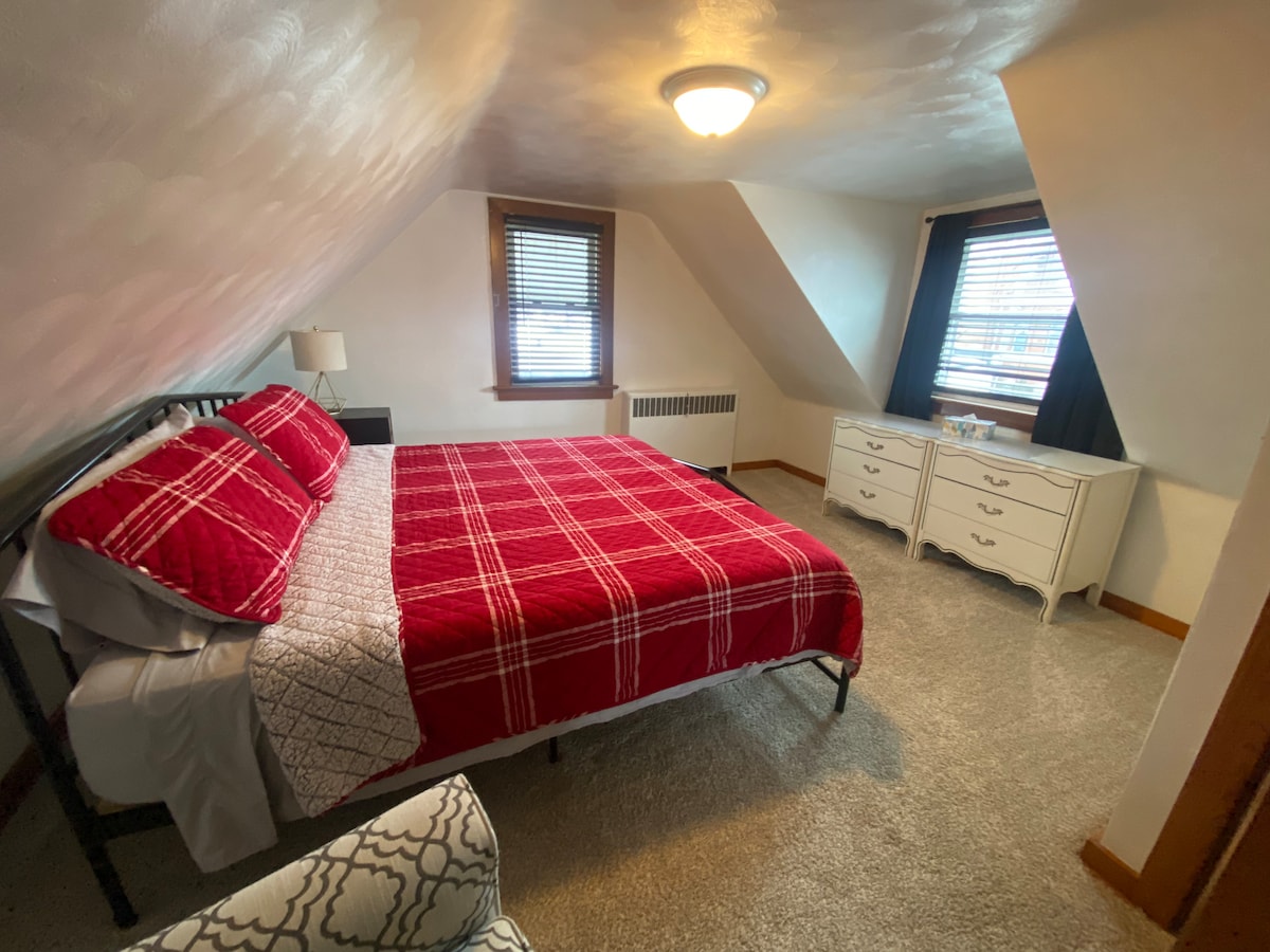 Este espacioso apartamento tipo estudio en la planta superior es acogedor y un espacio ideal para un trabajador que viaja. Cerca de todos los principales hospitales, GM, centro de Google y aeropuerto, pero lo suficientemente lejos como para disfrutar de la tranquilidad de una ciudad pequeña. Los paneles de madera y la chimenea eléctrica de la sala dan un ambiente acogedor y cabaña. El amplio dormitorio cuenta con cama tamaño king. Tiempo en coche a los principales hospitales y aeropuerto: - A 30 minutos de PRMC. -20 minutos del Hospital Luterano. - A 22 minutos del centro de datos de Google. - A 15 minutos del aeropuerto internacional de Fort Wayne y GM.