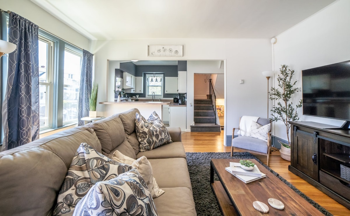 Este apartamento de 1034 pies cuadrados, bellamente decorado y espacioso, está situado en un barrio tranquilo y deseable, con suelos relucientes y un gran patio. ¡Disfruta de tranquilos paseos por el dique del río! Las características incluyen: Smart TV Roku de 50 pulgadas WiFi de 400 Mbps Aire acondicionado Cocina totalmente equipada Lavavajillas, microondas Lavadora y secadora Sábanas proporcionadas Aparcamiento fuera de la calle Libro de visitas con atracciones locales, restaurantes y más