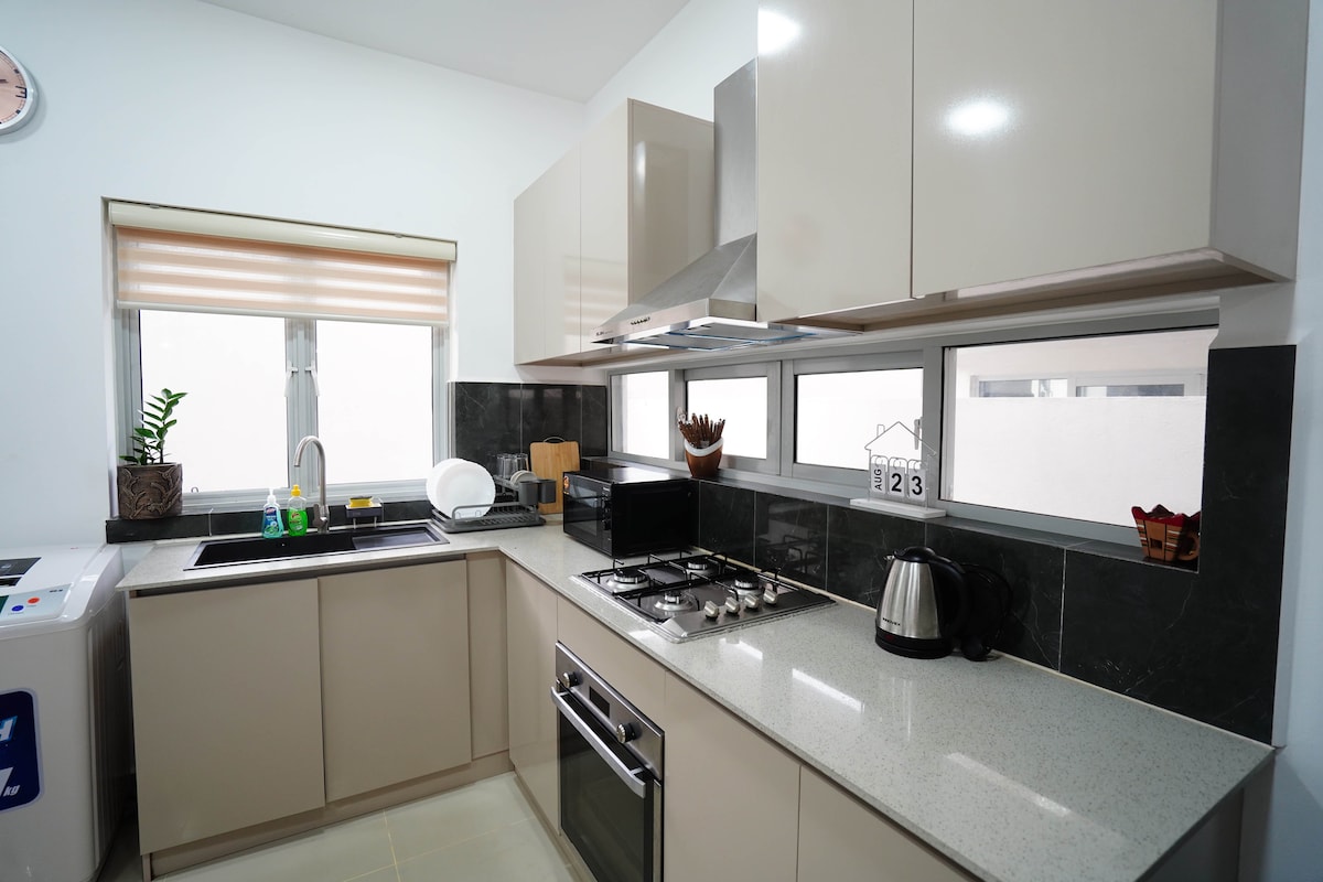 Bienvenido a Lavender Villa, tu refugio de tránsito perfecto a solo 10 minutos del Aeropuerto Internacional de Colombo (CMB). Ubicada en los seguros y pintorescos apartamentos del Santorini Resort en Negombo, esta elegante villa de 2 dormitorios es ideal para: 1. Escalas cortas 2. Llegadas nocturnas 3. Salidas a primera hora de la mañana 4. Escapadas en familia 🛏️ Lo que te encantará: Aparcamiento gratuito y seguridad 24/7 Acceso a los servicios del resort: piscina, gimnasio, cancha de tenis, parque infantil, pista de jogging. Wifi rápido y llegada autónoma