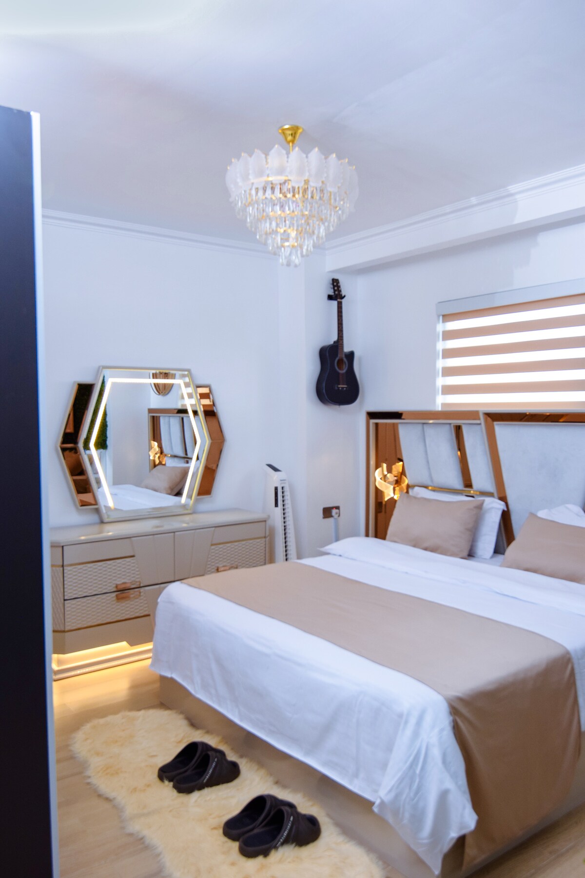 Disfruta de una experiencia de lujo en este céntrico alojamiento. SERVICIOS PRÉMIUM Aire acondicionado Freidora de aire/cocina completa Lavandería gratuita en el alojamiento Mosquiteras en puerta/ventana Internet rápido prémium (60 Mbps) Netflix Mesa de centro/escritorio con tapa elevadora (trabaja en el sofá) Purificador de agua para agua limpia. SERVICIOS DEL EDIFICIO Ubicación céntrica. Aparcamiento privado Gimnasio, sauna y baño turco. Sala de juegos con squash, billar Piscina infinita. Restaurante en el edificio Tienda de alimentación en el edificio Gran presión de agua.