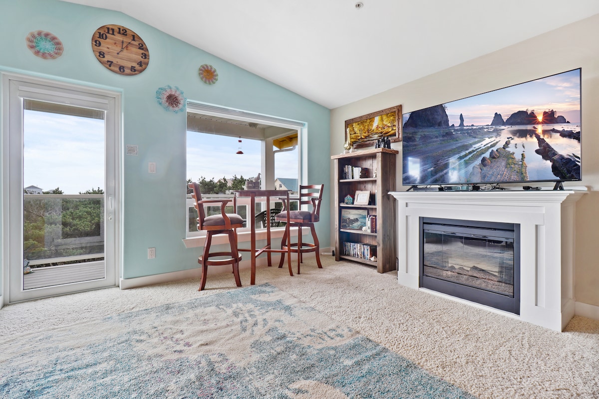 Relájate en este tranquilo apartamento de 2 dormitorios y 2 baños en el segundo piso en Westport, WA, con unas increíbles vistas al mar. Tiene capacidad para 6 personas con 3 camas en total (1 tamaño king, 1 queen y 1 cama queen plegable). También hay un corralito si es necesario. Sofá muy cómodo frente a la chimenea con vistas a las olas rompiendo. La entrada a la playa se encuentra en el parque estatal Westport Light, a solo 1/4 de milla a pie/en coche. También está a poca distancia a pie del faro de Grays Harbor y a menos de 10 minutos del puerto deportivo.