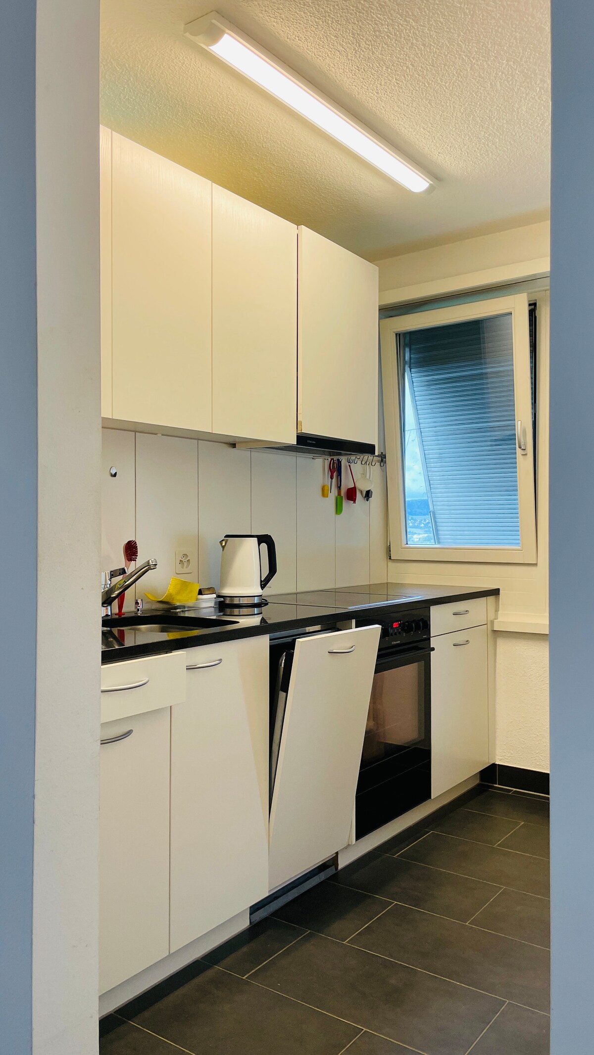 Este moderno apartamento recién terminado cuenta con una ubicación inmejorable. A solo 5 minutos en coche del aeropuerto y a 2 minutos a pie de paradas de tren y autobús, así como de encantadoras cafeterías, restaurantes y tiendas de comestibles. Disfruta de la comodidad de un rápido viaje en tren de 15 minutos al centro de la ciudad de Zúrich. Perfecto para viajeros que buscan comodidad y accesibilidad, incluidas las familias. El nuevo edificio cuenta con todas las comodidades modernas para una estancia excepcional. Anfitriones amables a la espera de preguntas y recomendaciones.