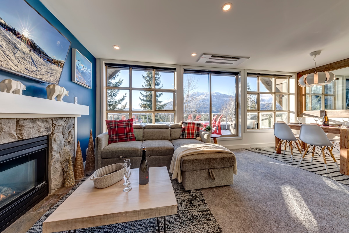 Te damos la bienvenida a tu oasis de montaña. ¡A 1 minuto a pie del remonte Blackcomb! Nuestro moderno apartamento es un luminoso y espacioso apartamento de 1 dormitorio con ventanas envolventes para unas vistas perfectas a los árboles y a las montañas. ¡Mira hacia arriba a la montaña Whistler mientras bebes café desde la mesa de tu cocina! La suite lo tiene todo: - Cama king - sofá cama - Cocina completa. - bañera DE hidromasaje - Keurig - Altavoz Bose - Aire acondicionado central, actualizado en julio de 2025. El edificio cuenta con gimnasio, lavandería, piscina y bañera de hidromasaje al aire libre.