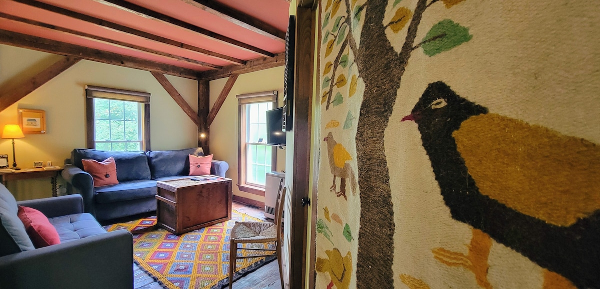 ¡Esta casa de campo tiene muchas zonas únicas para relajarse por dentro y por fuera! *Patio privado hundido totalmente equipado con parrilla de LP/carbón *Fogata *Comedor exterior cubierto *Tumbonas *2 hamacas *¡DUCHA AL AIRE LIBRE! *Porche soleado *Entrada privada *Patio tranquilo escondido en medio de la naturaleza *Cerca de muchos lugares para hacer senderismo y celebrar bodas. «The Corner House», una casa con estructura de madera, es perfecta para una escapada a Nueva Inglaterra. La casa consta de una estructura de postes y vigas de 1820 reubicada y es un lugar ideal para reunirse con familiares y amigos.