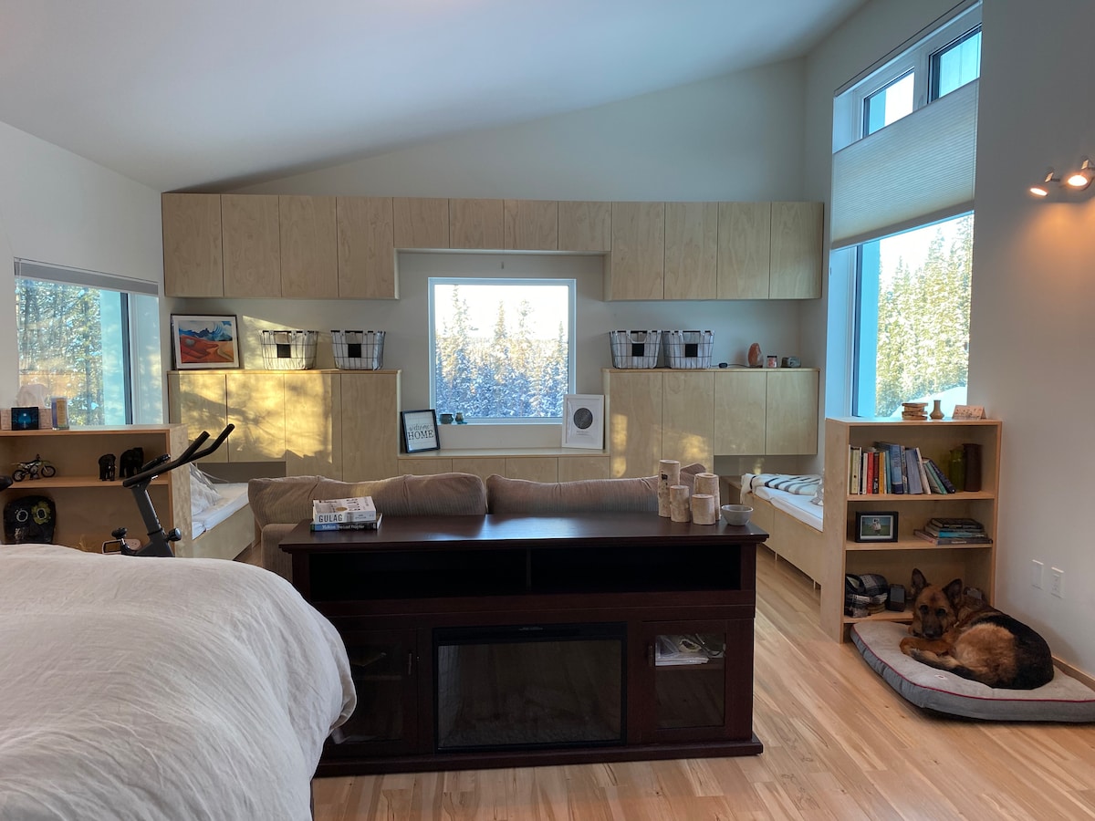 Completamente nueva en junio de 2019, esta es una casita moderna y rústica en un terreno privado y tranquilo rodeado de pinos y abetos. Hay hermosos senderos para caminar cerca, al igual que la cafetería Bean North, la Reserva de Vida Silvestre de Yukón y las aguas termales de Takhini. Gran vista del cielo oscuro para ver la aurora boreal en invierno desde el interior o el exterior en la gran terraza, o en el patio en el pozo de fuego dedicado. También hay un gran estudio de grabación profesional en la propiedad.