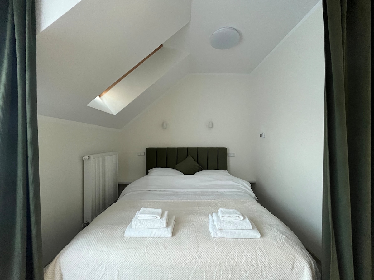 Green House es una hermosa casa con el alma artística de la propietaria, con una superficie de 150 m2, situada en el Parque Paisajístico de Cracovia. La planta baja tiene un amplio salón con chimenea y TV, comedor con cocina abierta, aseo y una escalera de caracol muy original. La planta superior cuenta con 2 dormitorios abiertos con chimenea y baño. Estilo loft escandinavo y un hermoso jardín. Toda la casa está disponible, así como el aparcamiento para tres coches, cerrado con una puerta eléctrica, y calefacción por suelo radiante. Se puede utilizar la parrilla.