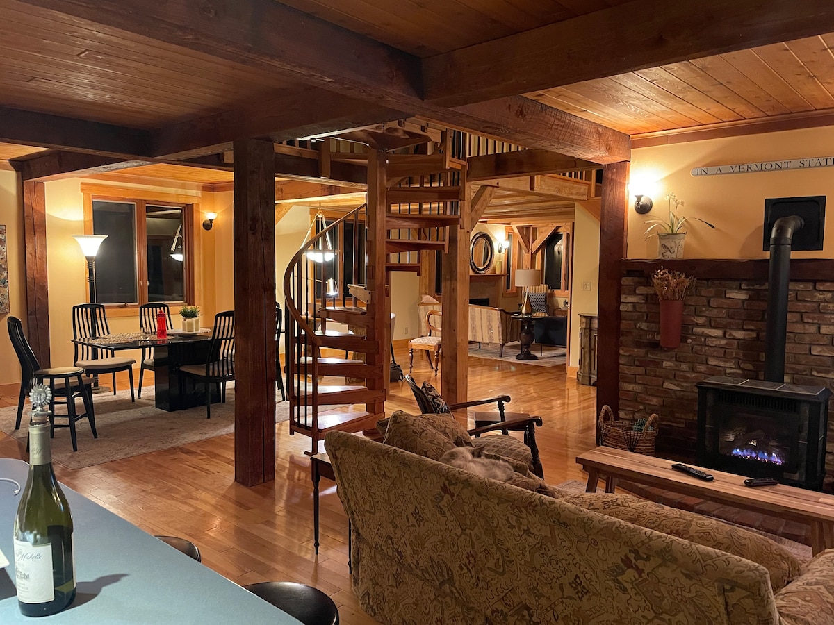 Escape to the serene beauty of Vermont's Green Mountains at the Mount Snow Chalet, a charming retreat nestled on a private wooded lot in the desirable Chimney Hill community of Wilmington. 🏠🌳 Just minutes from the slopes of Mount Snow, our chalet offers the perfect blend of rustic charm and modern amenities for an unforgettable getaway. Designed with love and care, we invite you to relax and stay awhile! 🥰