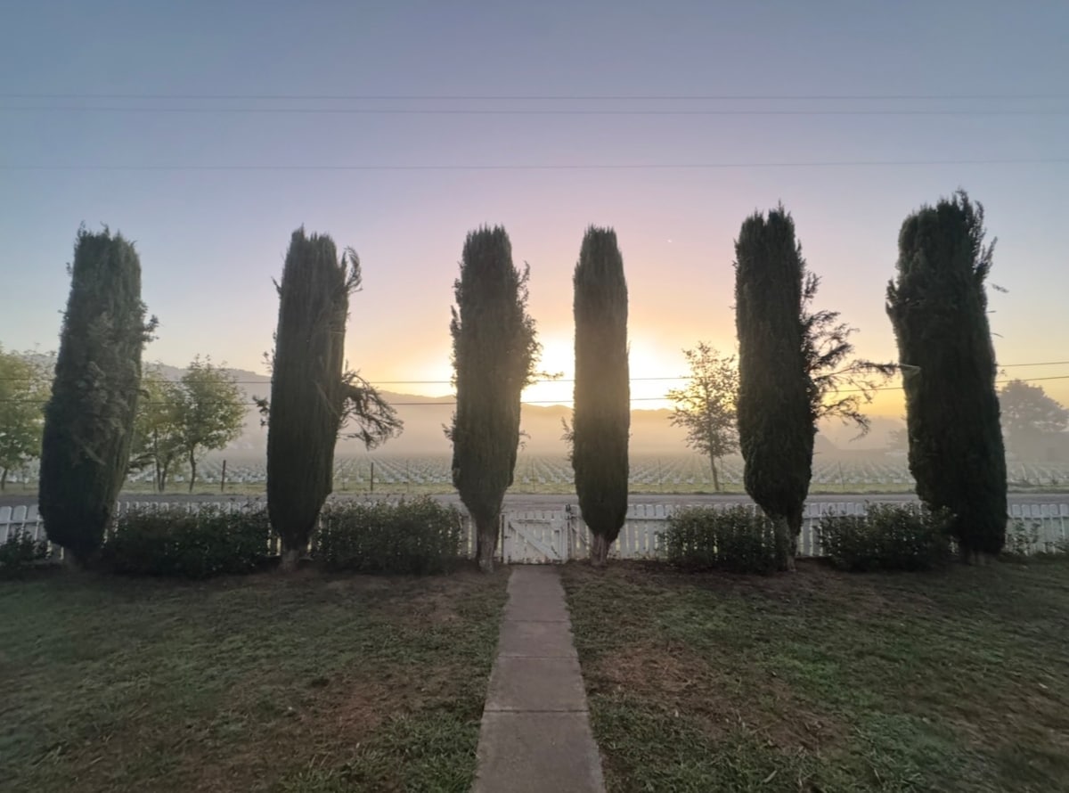 Encantadora.... casa de viñedos de tres dormitorios y dos baños tiene todo lo necesario para que tus vacaciones en la región vinícola sean cómodas y memorables. Disfruta de tus días tomando el sol y de tus noches en el patio contemplando las estrellas. Te espera una cálida bienvenida. Ubicado a minutos de bodegas, museos y otras atracciones famosas del norte de California. En lo que respecta a la piscina, ponte en contacto con el anfitrión para asegurarte de que está disponible. La piscina a veces se puede compartir con otros huéspedes de la propiedad.