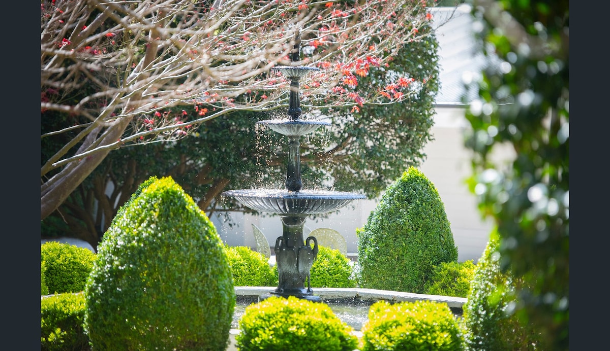 Esta suite de invitados privada, recién renovada y luminosa, se encuentra en una zona tranquila, a poca distancia a pie de la piscina, cafés, el centro de la ciudad de Bowral y la estación de tren. Si el Cherry Tree Walk y los paseos por el monte Gibraltar son atractivos, esto es para ti. Tendrás acceso independiente a una cómoda sala de estar. Hay una chimenea de gas. La cocina pequeña tiene una nevera de bar, microondas, cafetera y tetera. Tienes un patio privado junto al dormitorio, que tiene un ventilador y aire acondicionado.