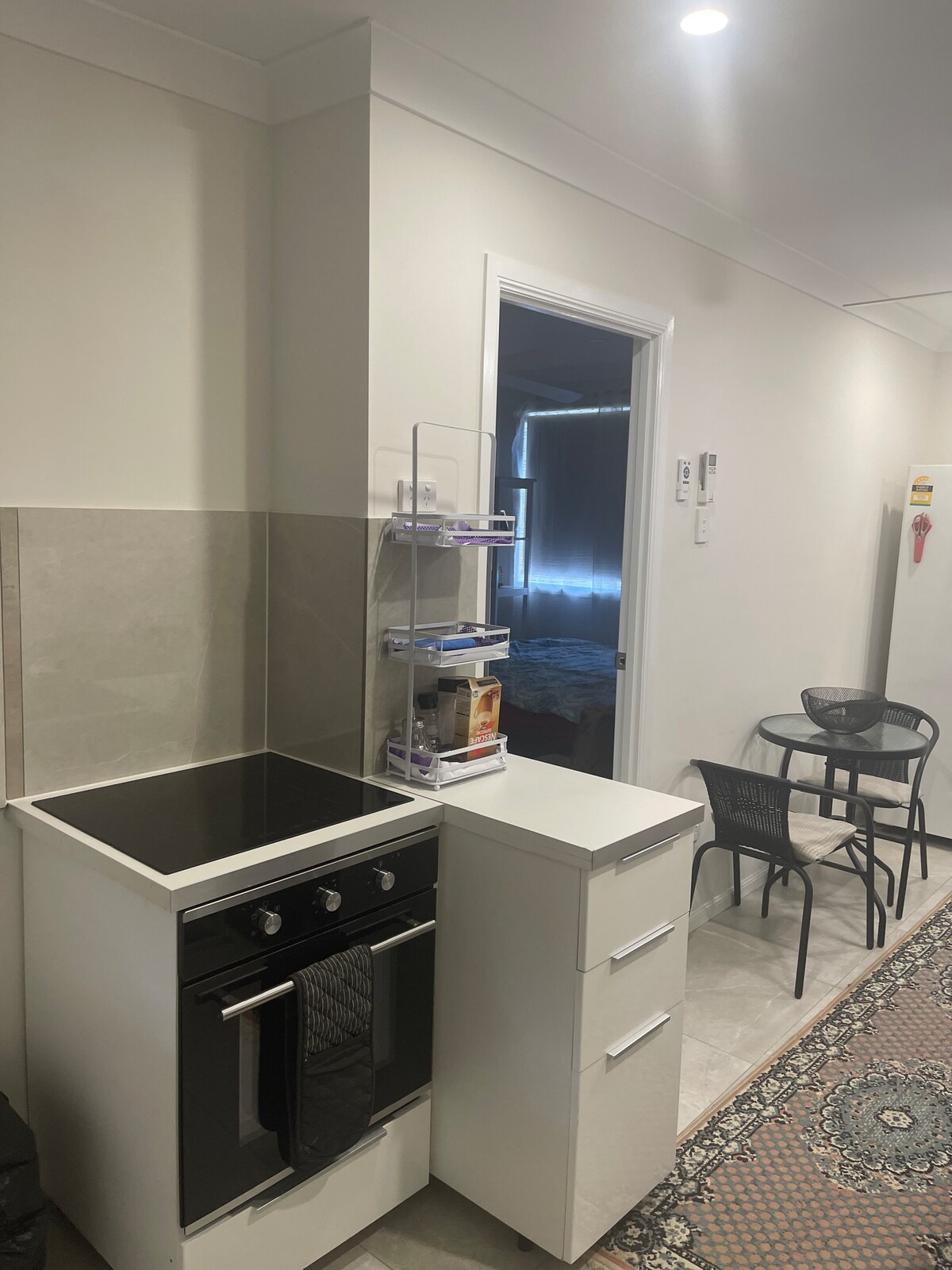 El Little Scandi Studio es moderno, luminoso y limpio. Un poco de lujo y privacidad en las afueras. El Little Scandi Studio es una habitación de 14,2 metros cuadrados que cuenta con una cama tamaño queen grande, una cocina americana totalmente equipada y un moderno y luminoso baño separado. El Little Scandi Studio tiene una pequeña terraza al aire libre, una barbacoa con mesa y 2 sillas contenidas en un patio seguro. Que también cuenta con lavadora.