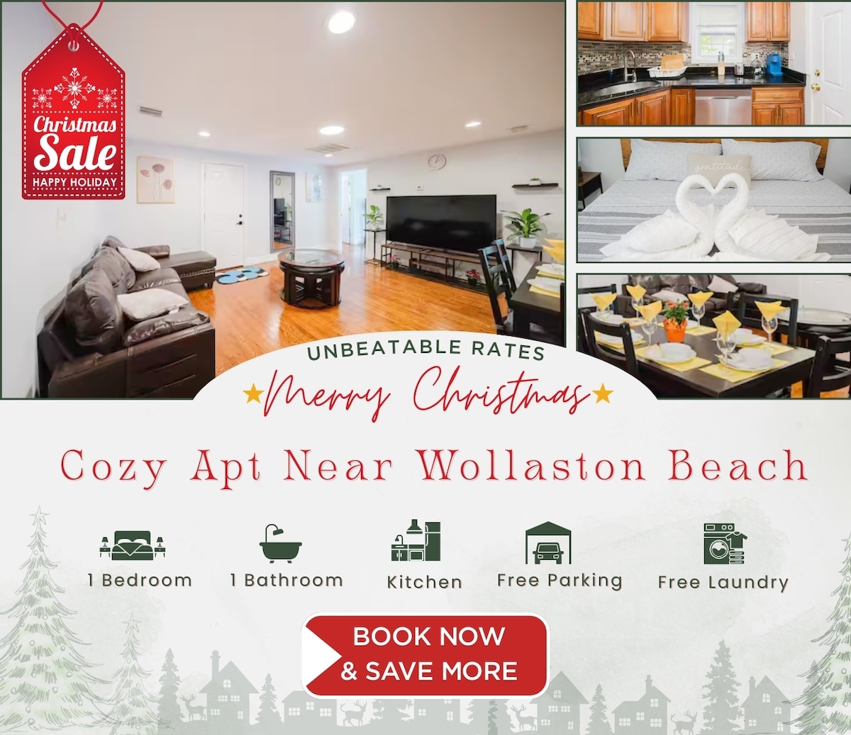 Disfruta de una estancia cómoda en este hermoso apartamento de 3 dormitorios y 2 baños recién renovado a solo 150 yardas de la playa y con cómodo acceso a Boston en coche (15-25 minutos) o transporte público (30-45 minutos). Es un espacioso apartamento de 1300 pies cuadrados, que acaba de ser completamente remodelado, conserva mucho carácter y cuenta con un montón de ventanas y luz. Recarga las pilas de tu viaje con estilo gracias a una cocina totalmente equipada, tres cómodas camas nuevas, TV de 55 pulgadas, sofá, zona de trabajo y comedor, baños nuevos, vestidor y aparcamiento gratuito fuera de la calle.