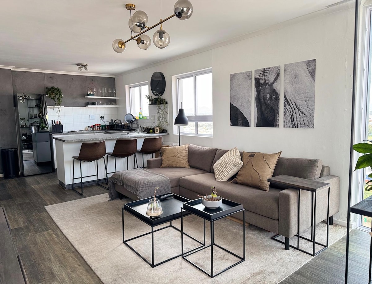 Apartamento de estilo neoyorquino frente a la montaña, perfecto para una estancia sin complicaciones. A las afueras del centro de la ciudad, a poca distancia a pie del Old Biscuit Mill. Piscina en la azotea, gimnasio básico e impresionantes vistas a la montaña de la Mesa. Tranquila unidad en el cuarto piso con un ruido mínimo. Cocina totalmente equipada, TV inteligente, plantas y arte, creando un espacio cálido y acogedor que te hace sentir como en casa. Cuidadosamente diseñado para la comodidad y la relajación. Seguridad las 24 horas y aparcamiento seguro incluido. Por favor, siéntete como en casa. 🏠
