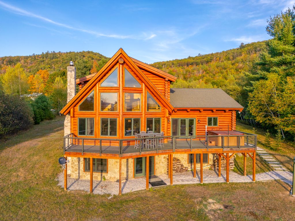 Three Peaks Cabin is a one of a kind Beautiful Mountain Home located in tranquil Bryant Pond Maine. Home sits atop peak that has direct views of the White Mountains, Lake Christopher and more as well as a stone throw away from world class skiing at Sunday River & Mt Abram. You'll feel right at home when you walk through the doors of this Bryant Pond vacation rental. The 3-bedroom, 2 -bath chalet-style house features 1625 square feet of beautiful living space complete with tasteful decor, with three large Pella French doors pointing directly west with views of Mt. Abram and Mt. Washington. Overlooking the Lake Christopher and surrounded by trees at the end of a cul-de-sac, this home offers families and groups plenty of outdoor recreation opportunities from boating and watersports to hiking, biking, and skiing! 65" Flat-Screen TV equipped with Dish Network Satellite, w/ Netflix, Prime Video, Dish Multisport w/ NFL Red zone | Gourmet Kitchen | Floor-to-Ceiling Windows From outdoor sports to downtown Bethel's unique shops and restaurants, this upscale retreat is the perfect getaway spot for families and groups! Bedroom 1: Queen Bed | Bedroom 2 Two Twin Beds | Bedroom 3: Two Twin Beds. OUTDOOR LIVING: Full private yard, with beautiful manicured grass and flowers during summer and fall months. Brand new Weber Gas grill, well designed fire pit with new Adirondack chairs & lovely outdoor sitting area with tables and chairs to sit and enjoy the view of the white mountains. INDOOR LIVING: 2 flat-screen TVs w/ streaming capabilities, Floor to ceiling fireplace which accompanies a large sectional couch to cozy up on the cool Maine nights next to the fireplace. dining table which sit four. The beautiful Gourmet Kitchen comes with stainless steel commercial gas range, Large stainless steel Refrigerator stocked with fresh neighboring Poland Spring waters, Stainless steel Dishwasher as well as an island where two additional seats are available. The downstairs bathroom also comes with a jacuzzi bath tub ready to relax the night away after a long day of enjoying western Maine festivities. KITCHEN: Fully equipped, drip coffee maker, keurig coffee & latte maker, toaster, cooking utensils, cutlery, spices, stainless steel appliances, dishware & flatware, breakfast bar GENERAL: Free Wi-Fi, central heat, central a/c, ceiling fans, towels/linens, complimentary toiletries such as Shampoo, Conditioner, Body Wash, Lotion, Goat Milk Soaps etc. & washer/dryer FAQ: Pet fee (paid pre-trip), stairs required for access PARKING: Driveway (4 vehicles) Three Peaks Cabin is located at 110 Yawkey Way, Bryant Pond, Maine. The home is located on a private street maintained by our HOA association. There are 6 total houses which included "Three Peaks Cabin". The property is located all the way up a steep paved road, last house on the right at the end of the culdesac.