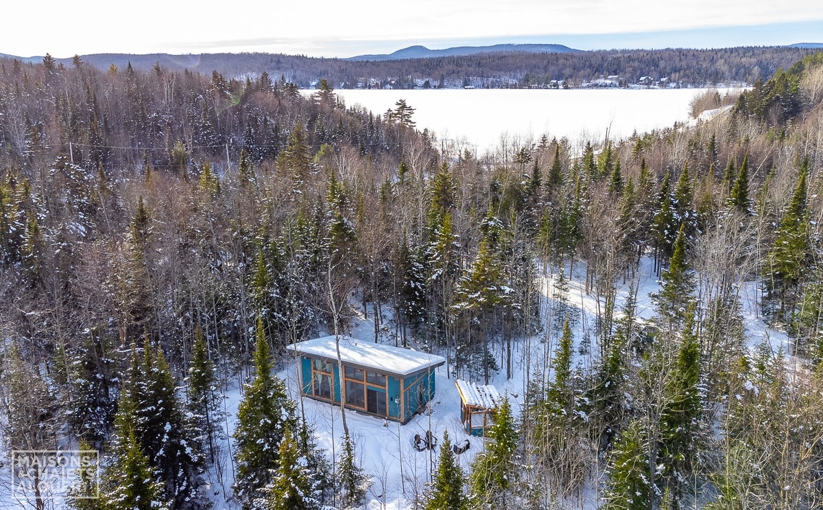 Cosy timeless chalet conceptualized by the architects of _naturehumaine. Nestled into the cliffside at an altitude of 490 meters (1600 feet), its unique design is distinguished by boldness and originality and fits with harmony in its environment. Surrounded by forest, the cottage offers breathtaking views of Mount Glen and the surrounding nature largely protected by the Appalachian Corridor. The perfect silent place to relax and unwind. Photo: Adrien Williams / S.A. CITQ #302449