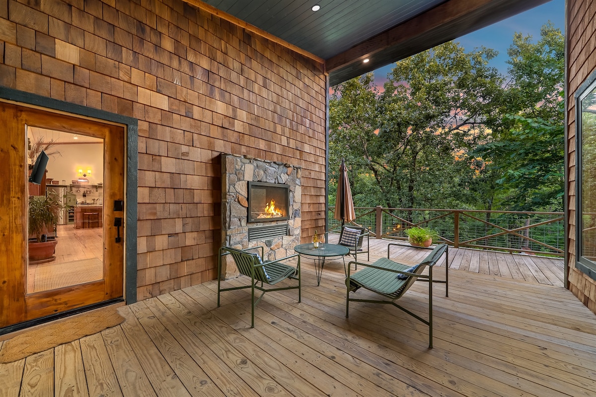CrazySexyCool is a stylish couples cabin in the heart of Hochatown, featuring a king bed, spa-like bath with a soaker tub and walk-in shower, a full kitchen, indoor and outdoor fireplaces, and a private hot tub. Perfect for romantic escapes, this cozy retreat offers luxury, comfort, and the ideal setting to relax and reconnect.