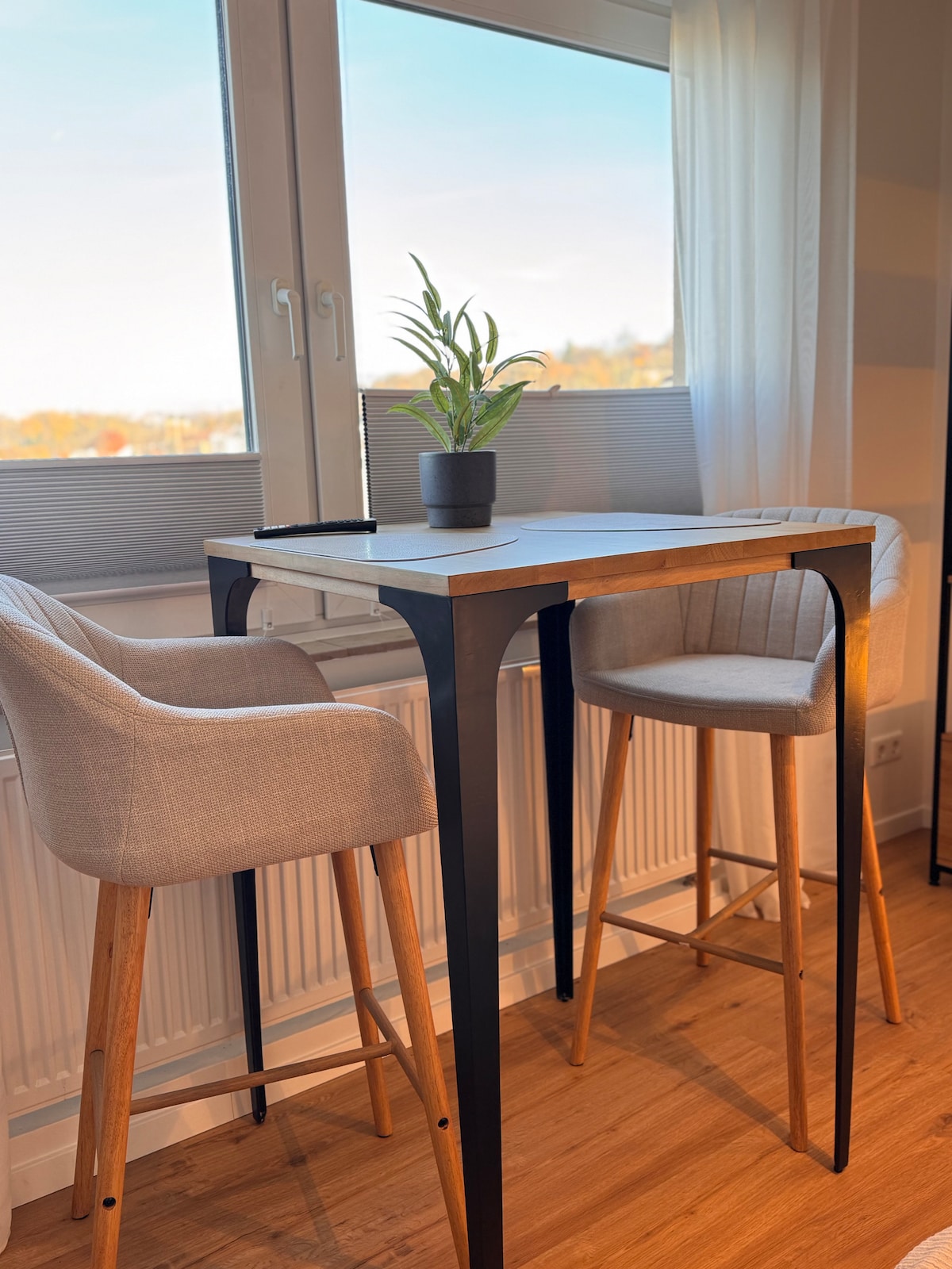 Apartamento moderno y elegantemente amueblado con sala de estar y comedor abiertos, cocina bien equipada y acceso a la terraza con vistas al campo. La tranquilidad de la habitación invita a relajarse. Un baño elegante y de alta calidad y un aseo separado para invitados proporcionan comodidad adicional. Ubicación privilegiada: las tiendas y el transporte público están a poca distancia a pie, el centro de la ciudad está a 5 minutos en autobús o a 20 minutos a pie, perfecto para hacer turismo o ir de compras.