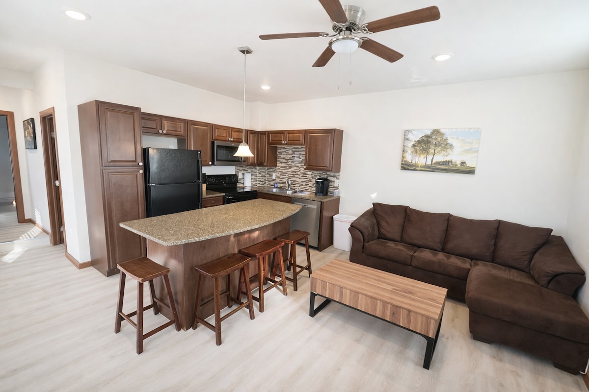 Descubre un apartamento elegante y moderno en el centro de la ciudad. Perfectamente situado a poca distancia a pie de bares y restaurantes del centro de la ciudad, y a poca distancia en coche de destinos populares como Frontier Park y la base aérea F.E. Warren. Disfruta de un diseño espacioso con un vestidor y una cocina totalmente equipada, ideal tanto para estancias cortas como largas. Nuestro edificio seguro está diseñado para escapadas de fin de semana o visitas prolongadas.