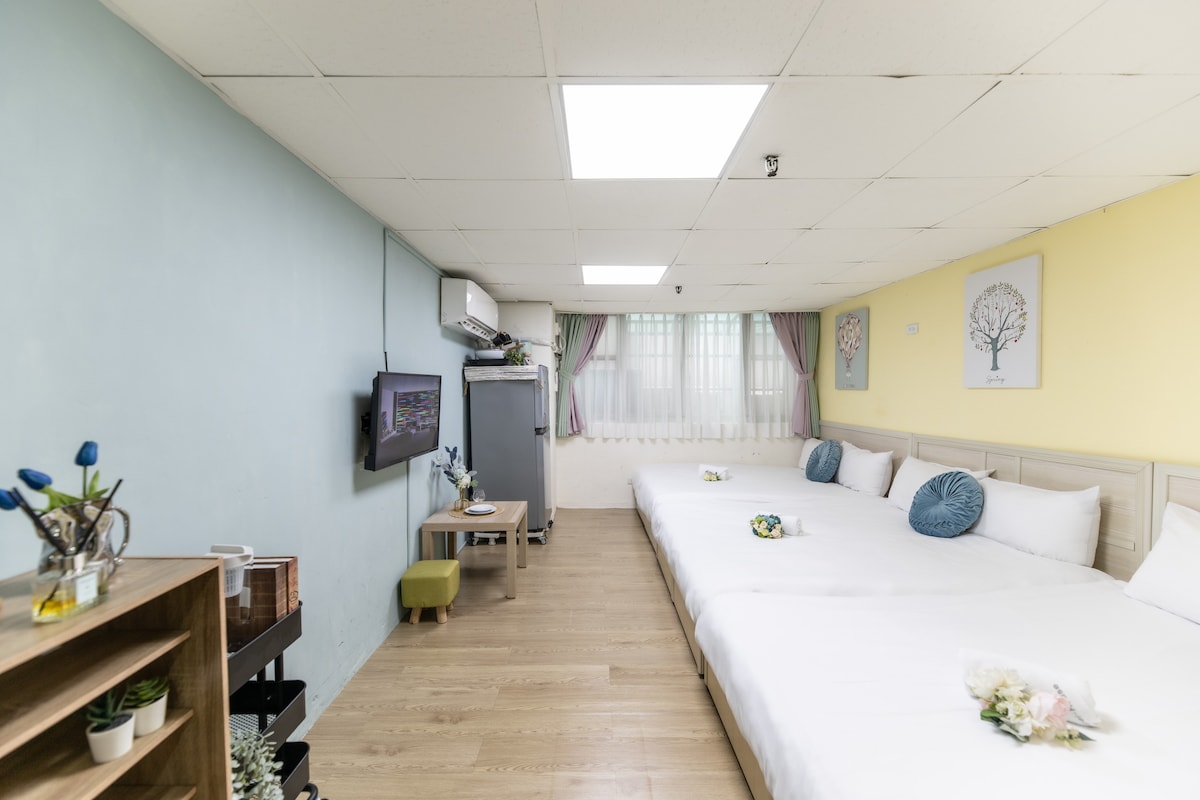 #訂價是2人的價格 3人以上(含3人)才會舖另一張床 請各位好寶寶要選好入住的人數喔! #只想接待「友善」「好溝通」的朋友。 「希望很多服務」;「住宿以外的問題很多」;「過度麻煩房東的人」,抱歉了,我沒辦法接待😰 #房間所在的中古電梯大樓,外觀及公共梯間較為老舊。但房間用心整理,不介意者再行訂房。 #非常普通的一般住家小房間不是飯店,房東用心但玻璃心,需要飯店服務的人切勿訂房。 1. Provide free 4G pocket WIFI 2. air coditioned room 3. cable TV 4. refrigerator 5. hair dryer 6. towel /shampoo/body wash/ 7. elevator 8. we will clean the room hard