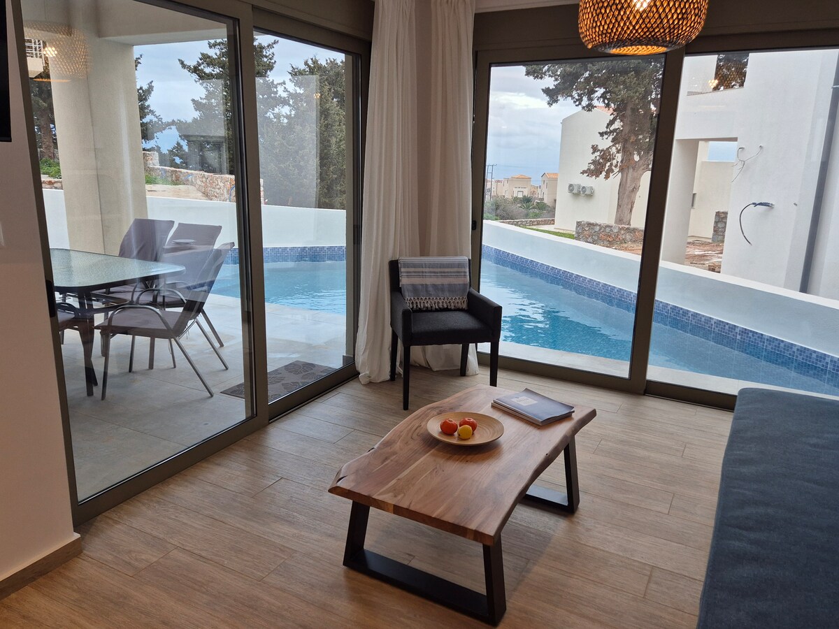 La casa de campo Asteri es una casa de campo de un dormitorio de planta abierta, joya y bellamente diseñada. Perfecta para parejas y recién casados. El interior de estilo boutique se abre a grandes terrazas para comer y relajarse. El baño con ducha conduce desde el relajante dormitorio a la piscina privada, que mide 2 m por 4 m. La piscina se puede climatizar previa solicitud. La casa de campo se encuentra entre olivos maduros en un acre de hermosa campiña cretense y está aislada de la casa principal.