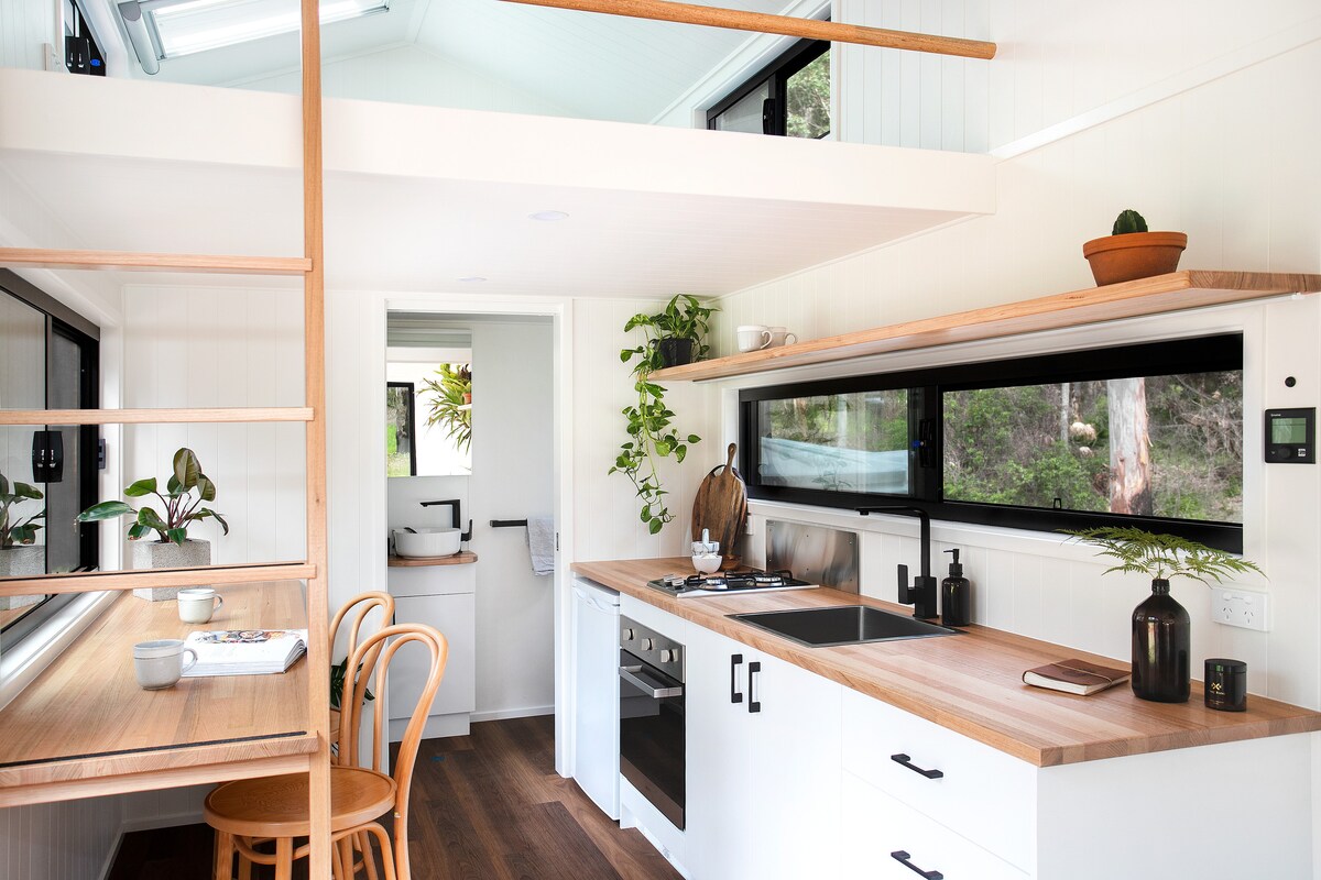 Vuelve a conectarte con la naturaleza. De vuelta al bosque estatal, esta minicasa única te da lo mejor de ambos mundos. Las pequeñas cosas están situadas en 3 acres con vistas a una presa llena de patos, canguros y aves nativas, pero a tiro de piedra de la ciudad y de las playas locales. Somos COMPLETAMENTE FUERA DE LA RED y RESPETUOSOS CON EL MEDIO AMBIENTE ❤️ Cesta de desayuno de cortesía para disfrutar en la terraza, proyector de películas para los días de lluvia y bañera de hidromasaje bajo las estrellas por la noche. 7 tragaluces VELUX y cama King….. disfruta DE LAS PEQUEÑAS COSAS