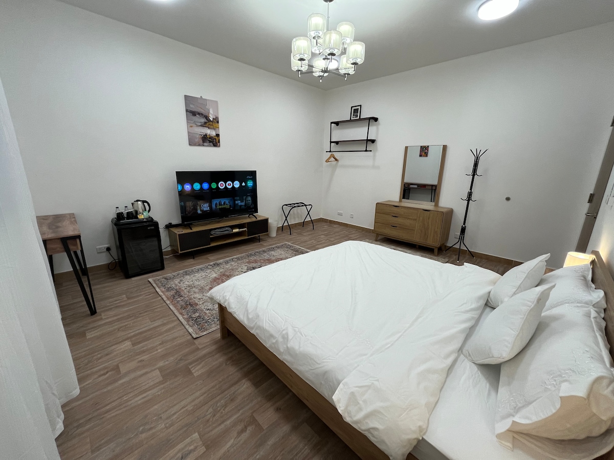 Apartamento adecuado para familias y cerca de todos los servicios, a una distancia de: • Mezquita a 3 minutos a pie • Tienda de comestibles a 2 minutos a pie • Farmacia a 5 minutos a pie • Lavandería a 2 minutos a pie • Cafetería a 4 minutos a pie • Aeropuerto a 14 minutos en coche Hay muchos otros servicios muy cerca Hay un salón de belleza y una barbería en el mismo edificio Y un paseo justo delante del apartamento