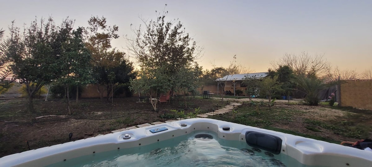 Cúpula geodésica situada en un olivar al pie de la montaña en una zona privada y tranquila. La casa es amplia, amplia, moderna y especial. Hay un aire acondicionado fuerte, una cocina totalmente equipada, una cafetera exprés, un microondas, una lavadora, una zona de estar al aire libre con una barbacoa y una piscina. Los alrededores son preciosos, con manantiales naturales y rutas de senderismo. El mar de Galilea se encuentra a 10 minutos en coche. Este alojamiento fue construido a mano por nosotros con amor y cuidado. Estamos encantados de compartirlo con ustedes!
