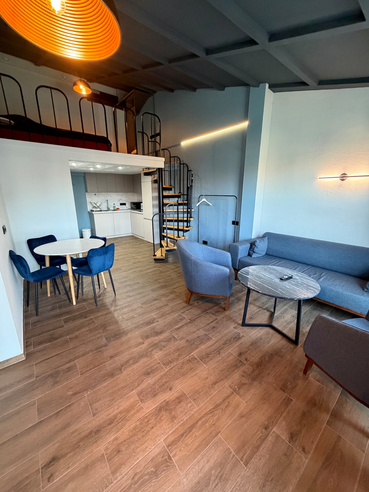 Este es uno de nuestros 14 apartamentos únicos, que se encuentran junto al centro comercial Dalma, a varios metros del Museo Conmemorativo del Genocidio Armenio, la fábrica de brandy de Ereván y la estación central de autobuses. La plaza de la República está a 1,9 km o a solo 25 minutos a pie. Este loft de lujo está diseñado por las últimas tendencias del diseño de interiores moderno con la ayuda de artistas armenios. Disfrutarás de las vistas desde el balcón a toda la ciudad y al monte Ararat.