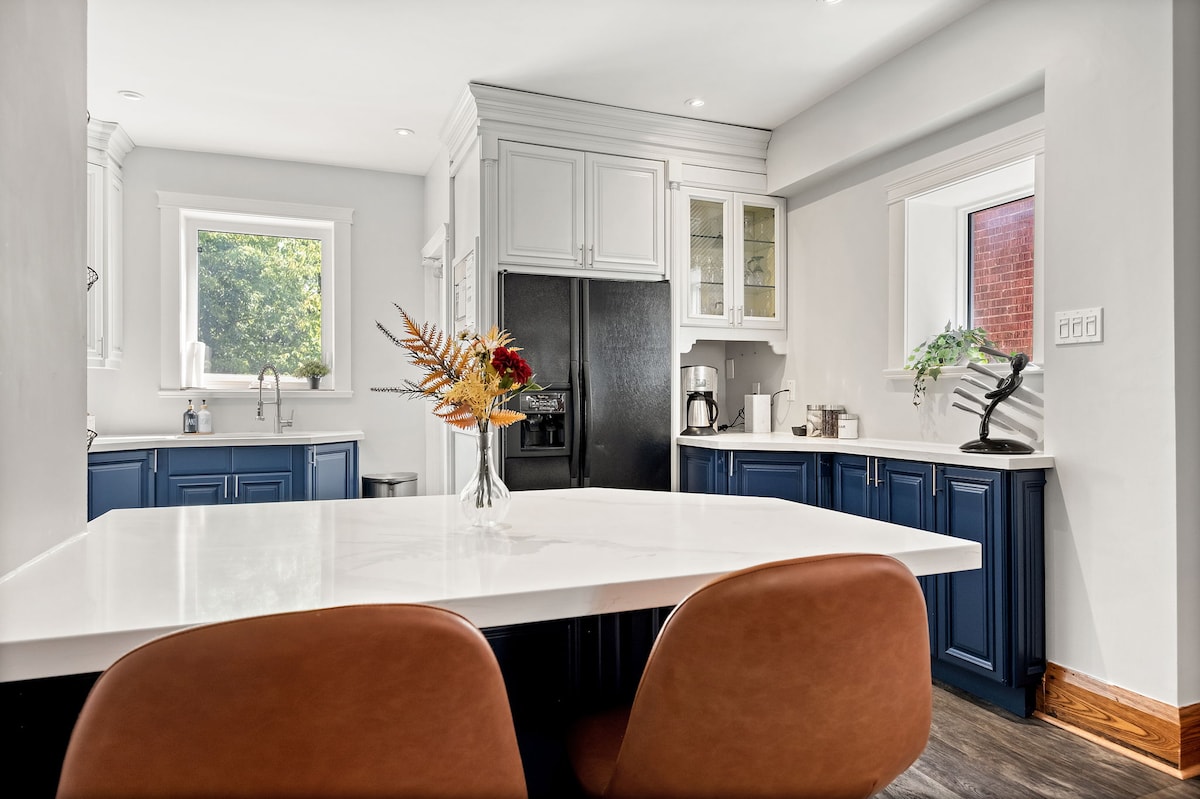 Moderna suite de 1 dormitorio en el sótano con entrada privada, cocina completa, baño elegante y acogedora sala de estar. Disfruta de lavandería en la suite, wifi de alta velocidad, Smart TV para streaming, aparcamiento gratuito y un cómodo dormitorio diseñado para una estancia tranquila. Con su diseño luminoso y de concepto abierto y su ubicación privilegiada cerca del transporte público, disfrutarás de un fácil acceso a las principales atracciones, tiendas y restaurantes. Perfecto para parejas o viajeros de negocios que buscan comodidad, conveniencia y una experiencia de hogar lejos de casa.