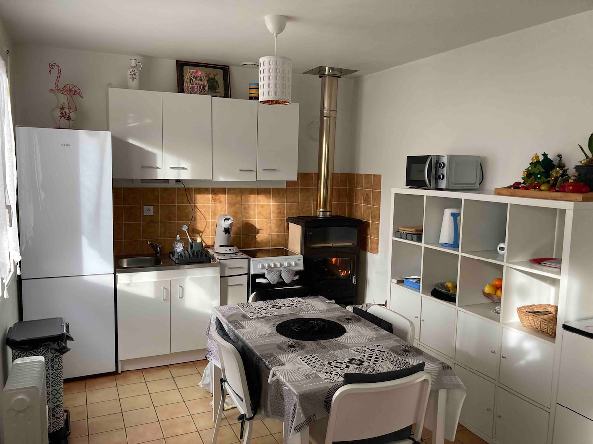 Nuestra casa de 25 m² con aparcamiento se encuentra en nuestra residencia principal, pero es independiente de nuestra casa. Encontrará una cocina, una sala de estar, un dormitorio, un baño/inodoro, terraza y todo esto privatizado con el fin de que tenga una estancia agradable. En nuestro alojamiento, la cama está hecha a su llegada y limpiamos a su salida.