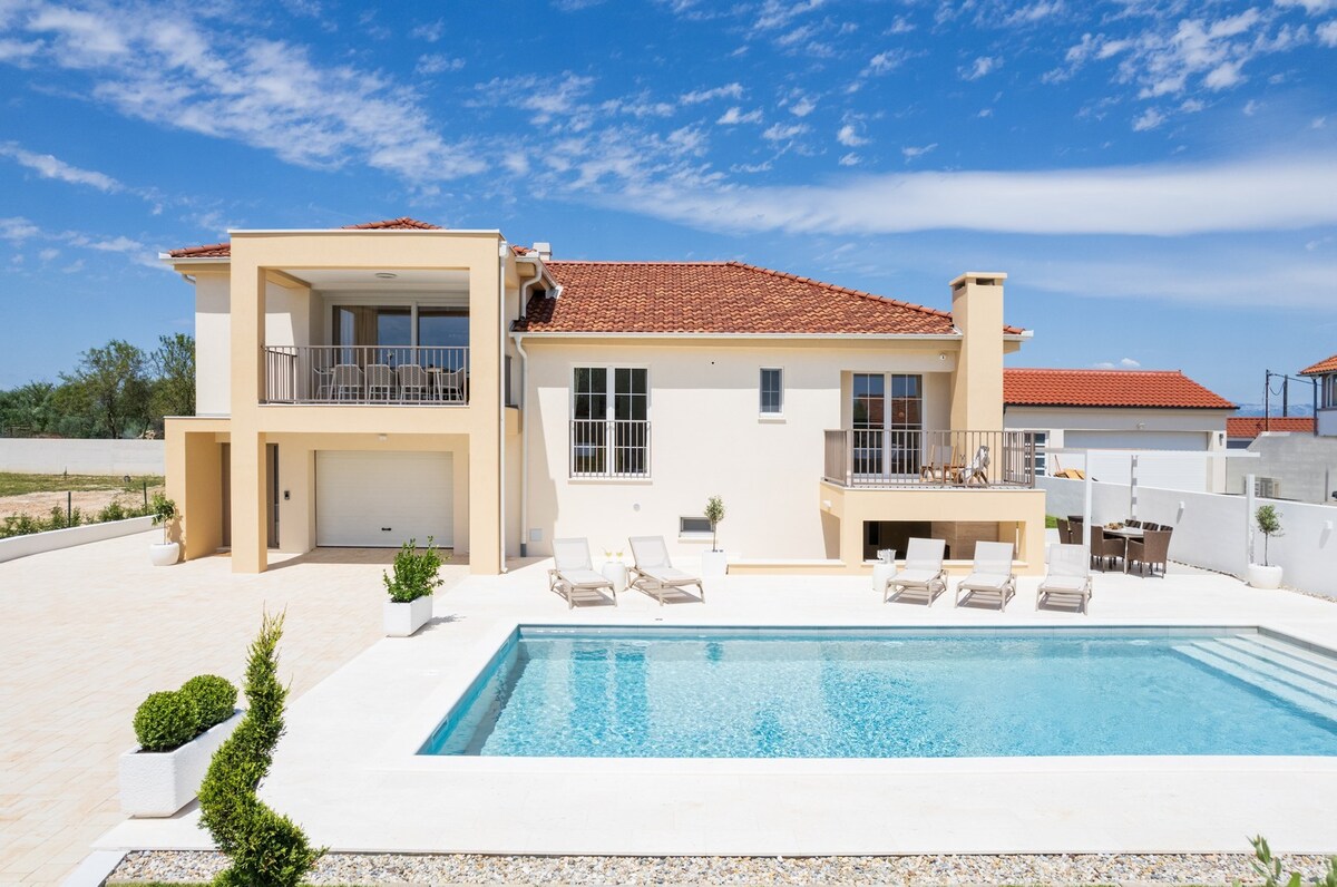 Villa Mariel moderna cerca de Zadar: piscina, jacuzzi, gimnasio