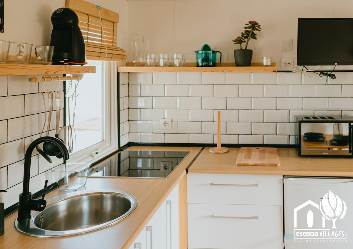 Precioso bungalow privado en Gran finca eco-chic a escasos minutos andando de la playa de Valdevaqueros. Cuenta con porche con hamacas, y zona chill out. En la zona comunitaria se encuentren piscina con sal, cama balinesa, comedor, zona bbq, columpios para niños, gran jardín y un cuarto de colada con Lavadora, secadora, plancha etc. La TV tiene smart tv con amazon prime, HBO, Netflix con acceso gratis para los huéspedes. Agua depurada bebible gratis ). Cafetera Lavazza con cápsulas incluido.
