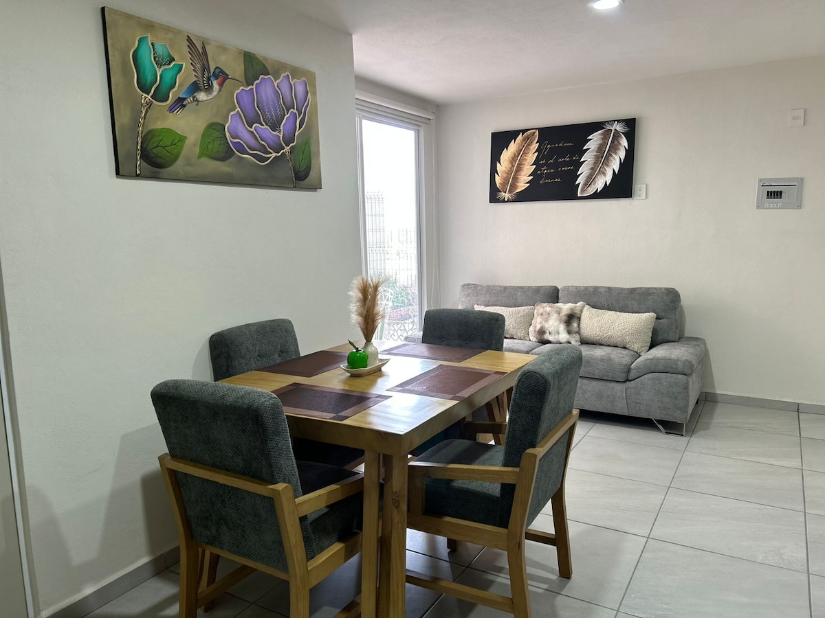 Disfruta de este alojamiento tranquilo y céntrico. Estamos en un pequeño fraccionamiento muy tranquilo y seguro, afuera de este encontraras -Desayunos de rancho -a 2 minuto caminando oxxo -Estacion macrobus -Barranca oblatos -Plaza comercial con lavandería y farmacias 24 horas, restaurantes cafeterías, bar snaks billar -8 minutos en auto arena guadalajara -Zoologico -Selva mágica -13 min. terraza oblatos -14 min. estadio jalisco -25 min. centro -27 min. tonala -30 min estadio akron