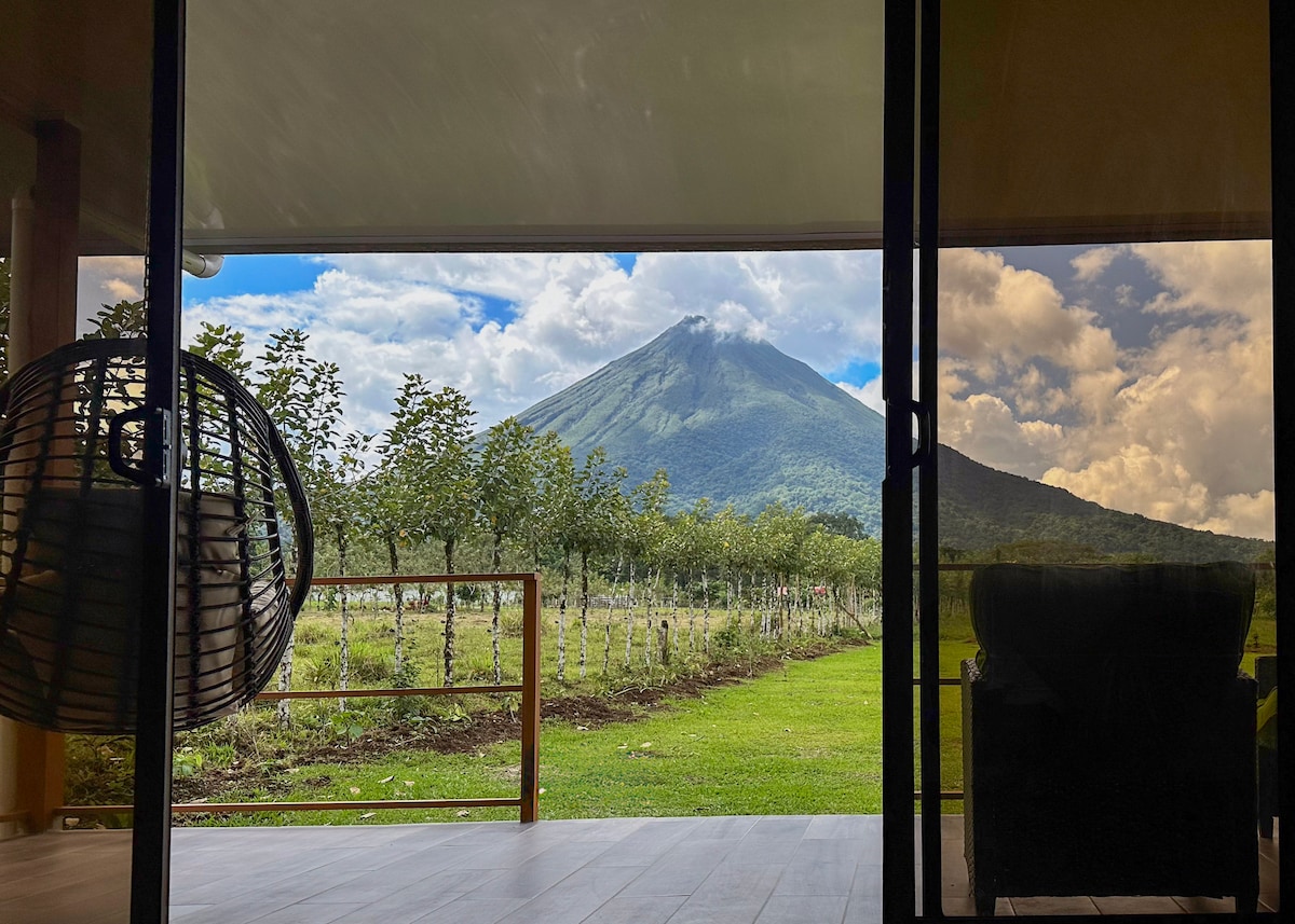 ¡Tu vecino el Volcán Arenal ! Respira la majestuosidad del Arenal desde la comodidad de tu cama,terraza mientras disfrutas de un café. Descansa mientras ves tucanes, pavas y monos que llegan a visitarnos -Catarata La Fortuna y Downtown a 5 Minutos (2 km) - 24/7 Vista panorámica del volcán en todo momento. -High Speed Wi-fi -Soda típica de cocina costarricense a tu disposición -Cafetería & Ice Cream on site No tourist traps. Precios increibles. Disfruta La Fortuna en este alojamiento único