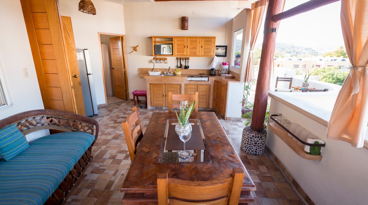 Te encantará la decoración elegante de este encantador lugar para hospedarte, te sentirás como en casa, vivirás un ambiente de tranquilidad y paz. Estando a unos pasos de la orilla del mar y a unos pasos de las hermosas montañas donde podrás caminar para ver y escuchar el canto de las aves. Sentirás estar rodeado de la naturaleza todo el tiempo