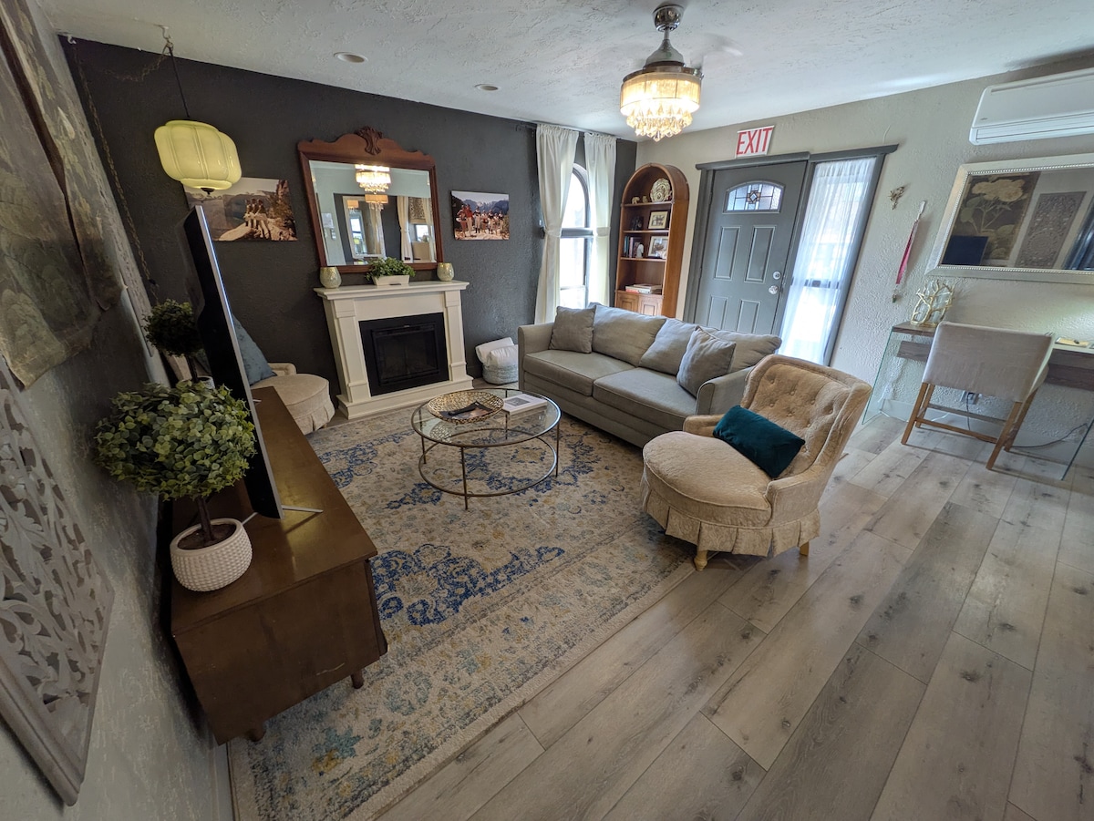 Acomódate en este moderno espacio de mediados de siglo, a poca distancia en coche de la belleza del Parque Nacional Zion. Nuestro refugio de 2 dormitorios y 1 baño es el hogar ideal para disfrutar de todo lo que ofrece el sur de Utah. Tanto si vas de excursión a los parques, como si vas en bicicleta por los senderos o de compras por St. George, podrás descansar y recargar energías en un tranquilo patio trasero sombreado con salón al aire libre, parrilla y jacuzzi privado. Disfruta de todas las comodidades del hogar con una cocina completa y lavandería en el lugar.