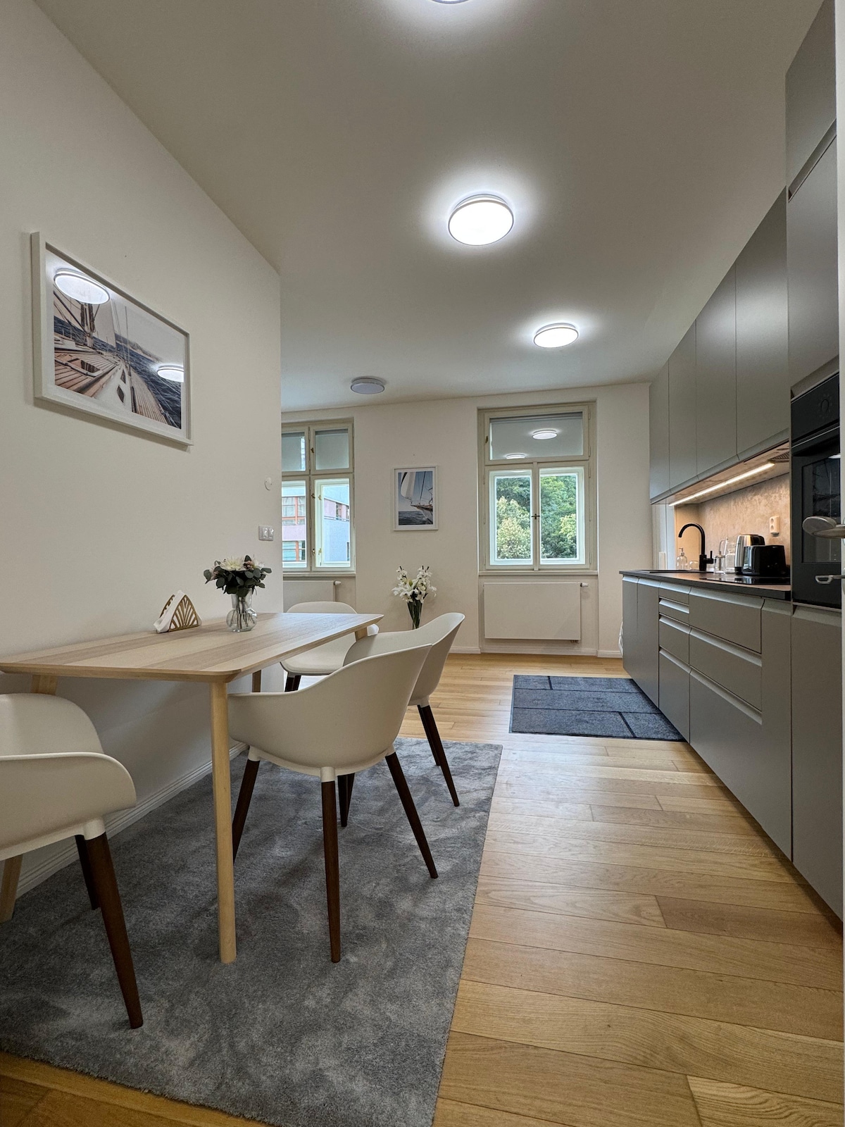 Share a leisurely breakfast on the sunny south-facing terrace, then roll out the electric awning for some downtime in the shade. This bright, spacious and quiet abode sits in the center of Prague in lively, bohemian area close to parks with city views and popular restaurants. Enjoy your sleep on Super King size bed or on comfortable pull out sofa when staying with your family or friends. Cook yourself a gourmet meal after shopping at Farmers market in our hyper equipped kitchen.
