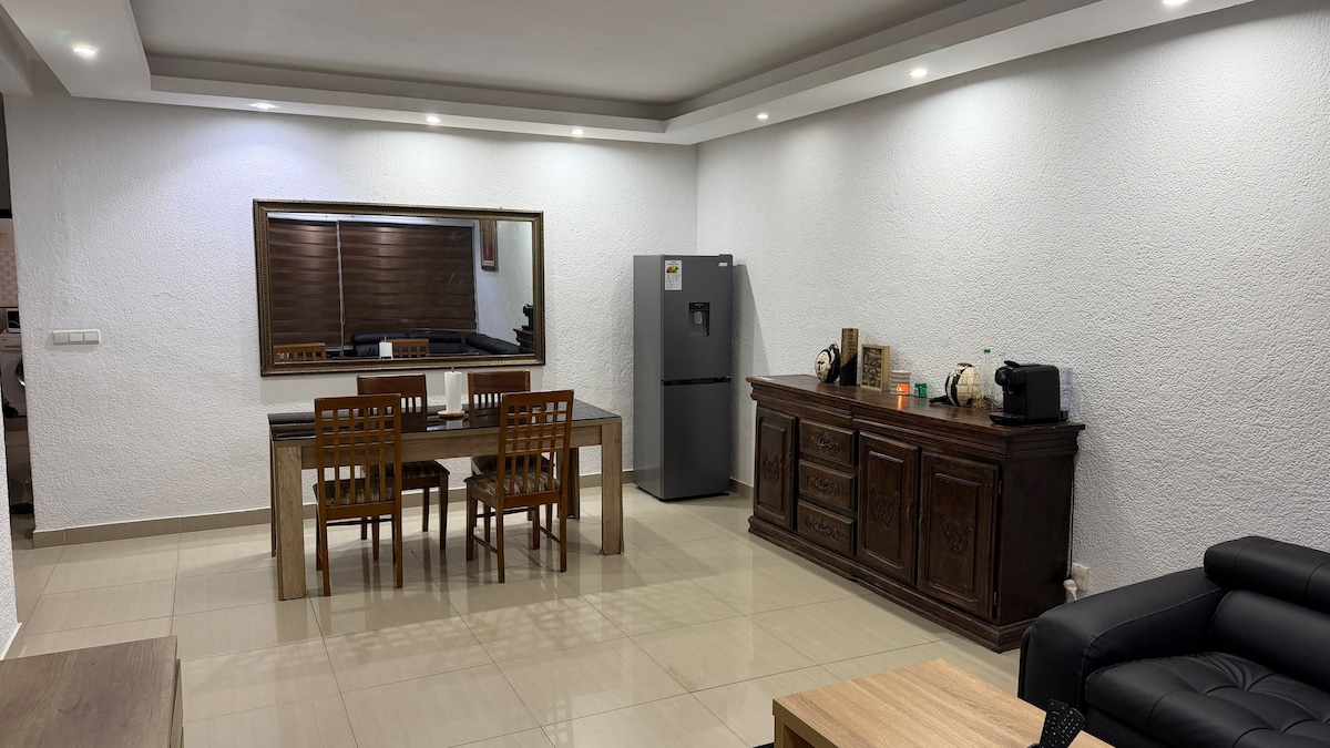 🏅El 10 % de los alojamientos en Airbnb que más triunfan. Disfruta de un elegante apartamento de 3 dormitorios en el corazón de la Zona 4. Luminoso, elegante y acogedor, cuenta con una decoración de buen gusto, tonos suaves, detalles dorados y arte local. Perfecto para relajarse o trabajar a distancia, con ropa de cama de calidad hotelera, cocina totalmente equipada y limpieza diaria incluida. La seguridad 24/7 garantiza la tranquilidad durante tu estancia en uno de los barrios más vibrantes de Abiyán.
