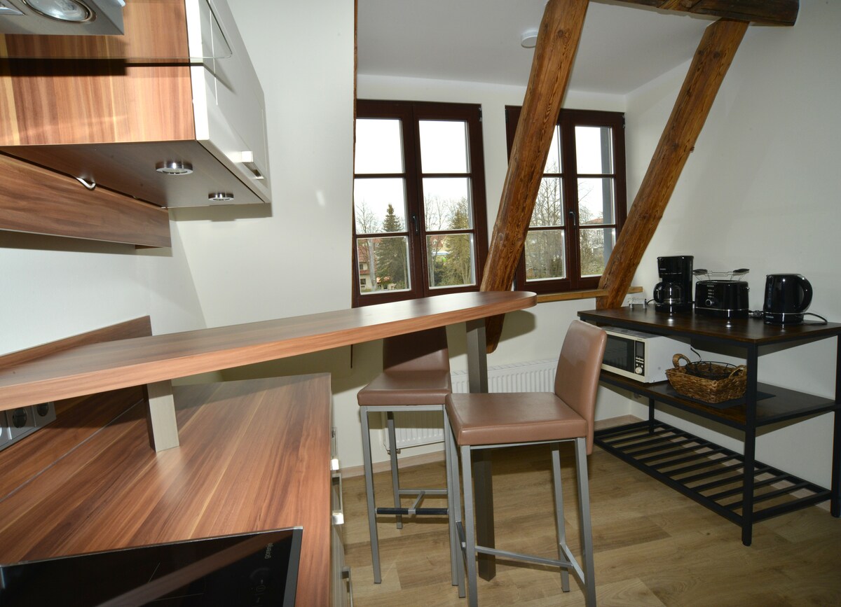 Llega y siéntete bien: romance en el patio trasero en medio del casco antiguo histórico de Leisnig, en el Muldental sajón. ¡Disfruta de tu descanso y siéntete bienvenido! Situado entre Leipzig, Dresde y Chemnitz, hay mucha cultura y naturaleza que explorar. Nuestro apartamento «Elfriede» te ofrece un baño con una amplia ducha, un dormitorio doble (1,80 x 2 m), una sala de estar con cocina, sofá cama y comedor. El patio de nuestra cafetería te invita a quedarte.