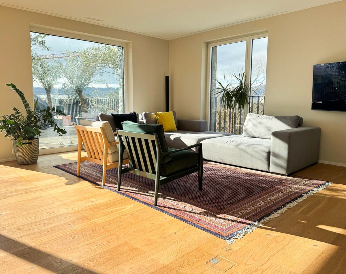 Alquilamos un ático muy bonito, luminoso y acogedor con 2 dormitorios con 2 camas dobles, un nicho con cama y sofá cama, cocina con mesa de comedor, despacho, baño y aseo. El apartamento está justo al lado de la estación de tren. Restaurante, panadería con cafetería, Coop (abierto los 7 días de la semana) justo al lado. A 20 minutos de Zúrich. Nosotros, la familia anfitriona, vivimos en los dos primeros pisos. En la hermosa Oberland de Zúrich tiene muchos destinos y áreas recreativas justo en frente de la puerta principal. Vistas a las montañas.