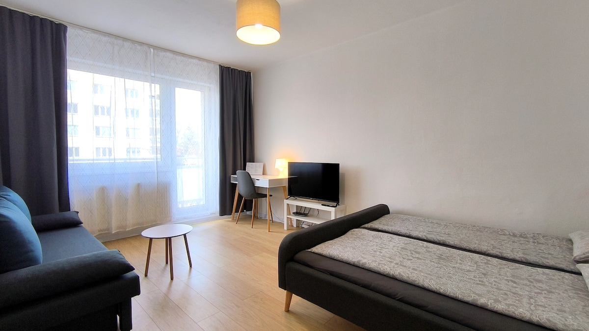 Apartamento elegante y espacioso a un paso del centro de la ciudad (10 minutos a pie) y a solo 2 minutos de la estación de autobuses / tren y del centro comercial Terminal. Ubicación tranquila y segura en un parque con parque infantil. En las inmediaciones hay tiendas, restaurantes, cafeterías y otras comodidades de la ciudad y al mismo tiempo está a un salto de la naturaleza (Bajos Tatras, Velka Fatra, Podpolanie, Kremnické Vrchy - paraíso de los esquiadores). El apartamento está totalmente equipado para que tenga una experiencia inolvidable en B.Bystrica.